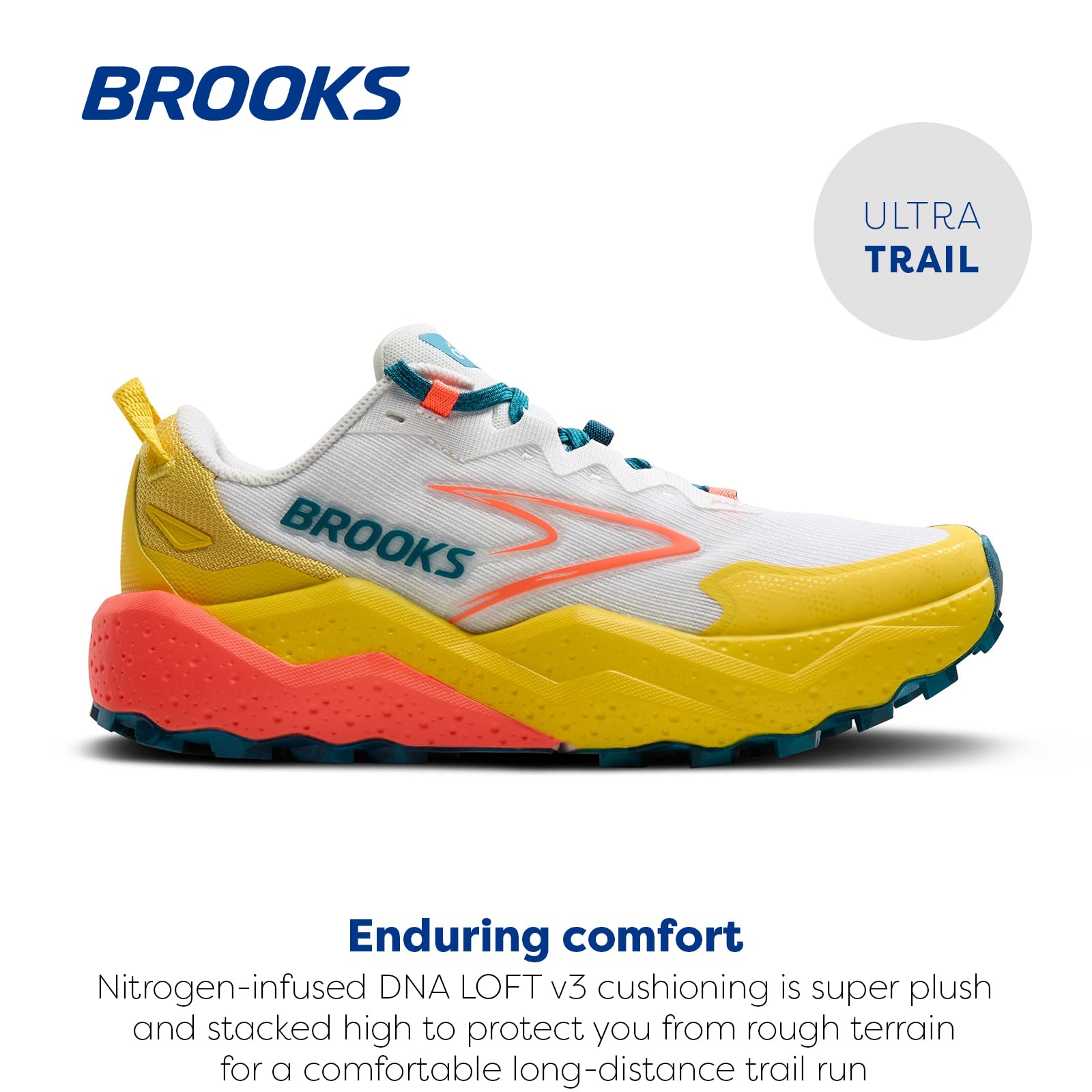 WOMEN’S ULTRA TRAIL SHOE: Go the ultimate distance with the Caldera 8, featuring DNA Loft v3 high-stacked softness that acts like a bike tire over rough, rugged terrain while the raised sidewalls offer security and stabilization. Ideal for distance trail runners looking for protective comfort. The Caldera 8 is a certified Carbon Neutral product. Predecessor: Caldera 7.