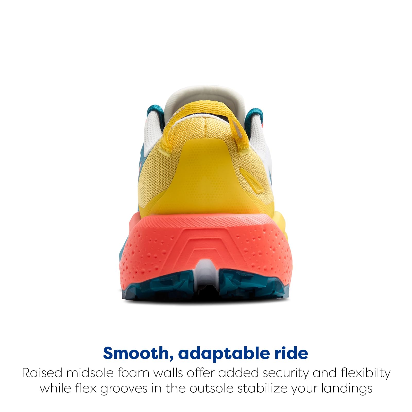 SMOOTH, ADAPTABLE RIDE: The raised sidewalls offer added security and flexibility where you need it, while the widened base and added flex grooves in the outsole work to stabilize your landings over rough terrain.