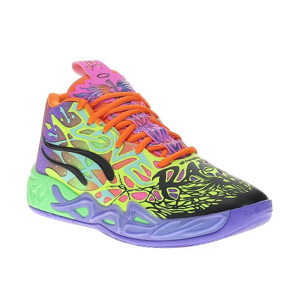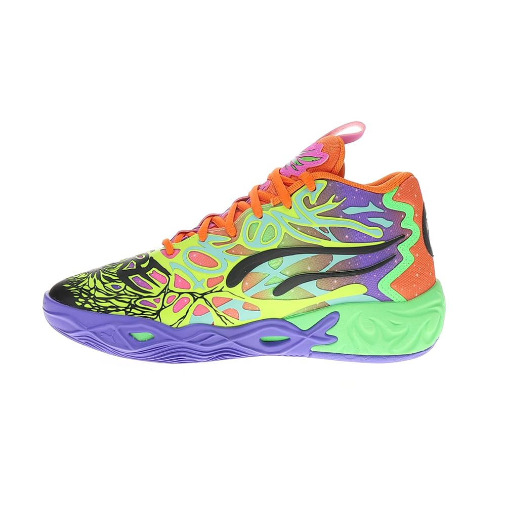 Puma LaMelo Ball is not of this Earth ? but fortunately he comes in peace. Inspired by Melo’s otherworldly style of play, the MB.04’s unique design is wrapped in alien tentacles with Melo phrases hidden throughout. With a supportive double-layered mesh upper and NITROFOAM cushioning for on-court power, the MB.04 has it all. Specs Regular width