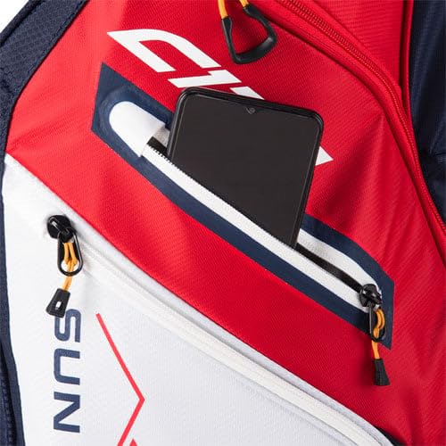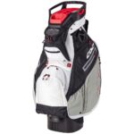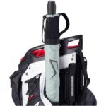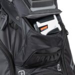The Smart Strap System attaches the bag to a riding cart with two Velcro straps which stop the bag from twisting on the cart and prevent the riding cart’s straps from interfering with pocket usage.